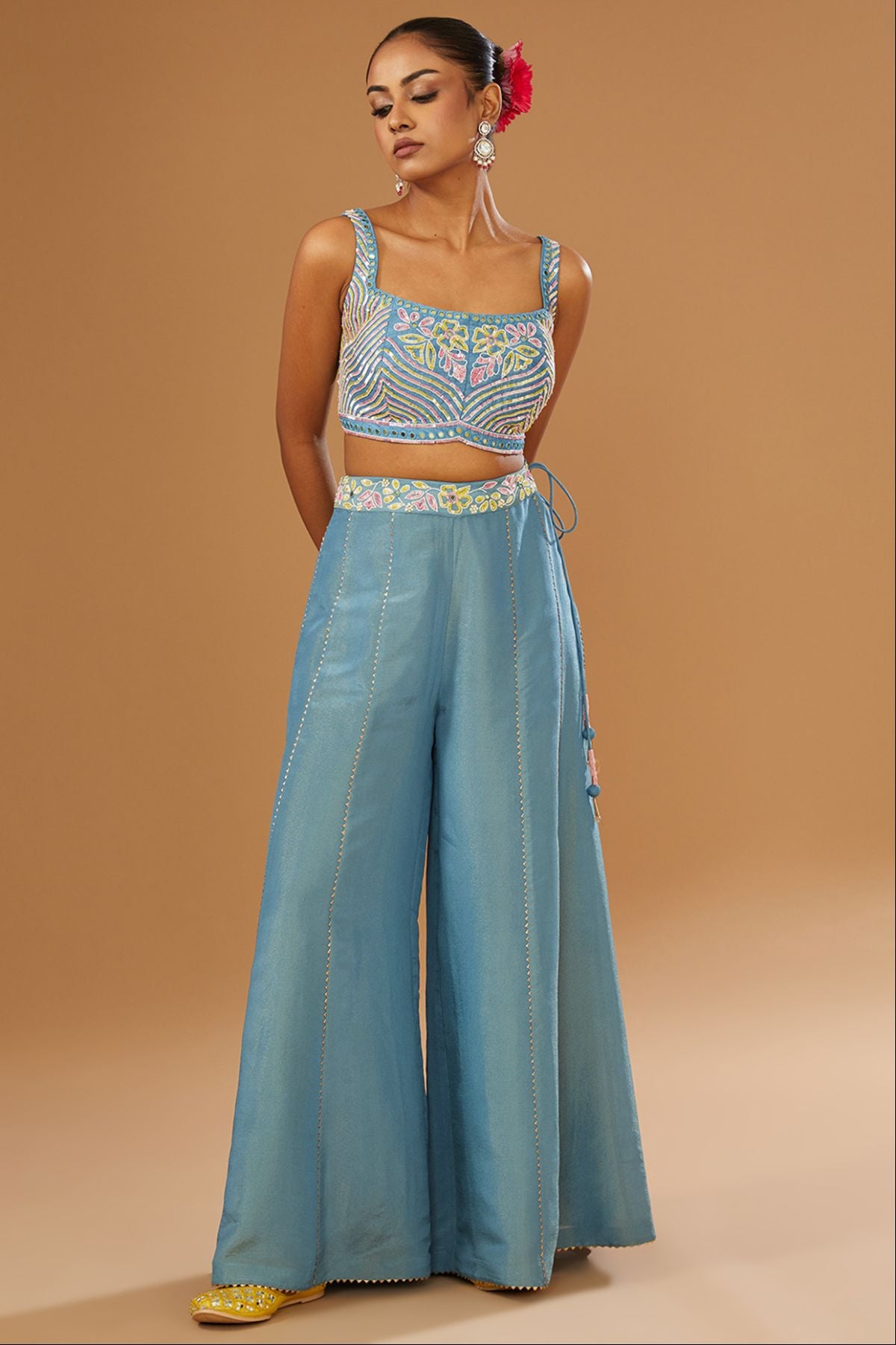 Sets Includes Of: Jackect , Palazzo , Bustier